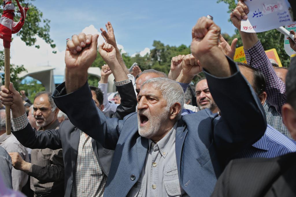 2018年5月11日,在伊朗首都德黑蘭,民眾抗議美國退出伊核協議。新華社發(fā)(哈拉比薩茲攝)
