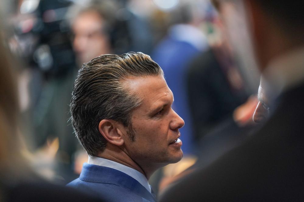 2月13日,在比利時(shí)布魯塞爾北約總部,美國國防部長赫格塞思出席“烏克蘭防務(wù)聯(lián)絡(luò)組織”會(huì)議。新華社記者彭子洋攝