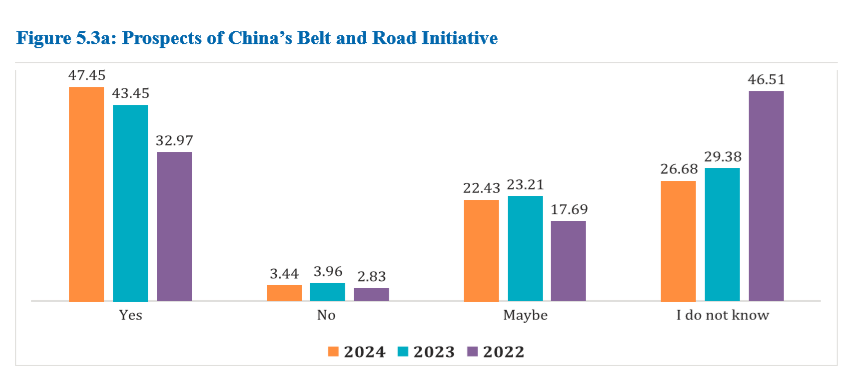 許多受訪者認為中國的經(jīng)濟倡議,如共建“一帶一路”倡議,能夠推動孟加拉國的增長。