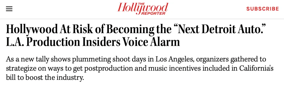 △《好萊塢報道者》發(fā)表題為《好萊塢或成為下一個底特律》的文章,指出好萊塢最后可能只剩一具空殼。