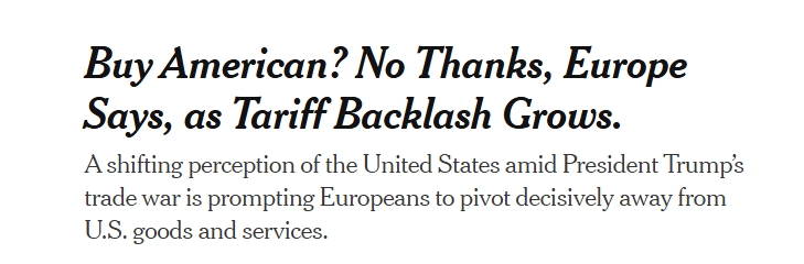 歐洲央行(European Central Bank,ECB)的最新評(píng)估顯示,在美國(guó)與歐洲貿(mào)易戰(zhàn)的緊張局勢(shì)下,許多歐洲消費(fèi)者開始回避美國(guó)產(chǎn)品和服務(wù),“不再購(gòu)買美國(guó)貨”似乎是一次可能長(zhǎng)期持續(xù)的決定性轉(zhuǎn)變。
