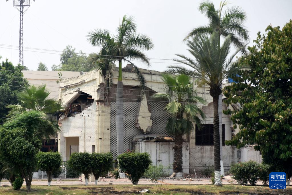 這是5月7日在巴基斯坦東部旁遮普省謝赫布拉地區(qū)穆里德蓋鎮(zhèn)拍攝的遭印度導(dǎo)彈破壞的建筑。新華社發(fā)(薩賈德攝)