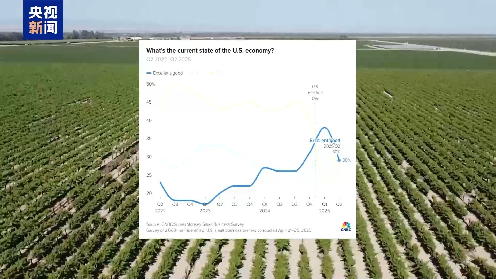 美國消費者新聞與商業(yè)頻道發(fā)布的針對美國小企業(yè)的調(diào)查顯示,僅有30%的小企業(yè)主認為當(dāng)前經(jīng)濟狀況優(yōu)秀或良好,70%的小企業(yè)主認為當(dāng)前的經(jīng)濟狀況一般或者差勁。70%的小企業(yè)主認為美國正在走向經(jīng)濟衰退。