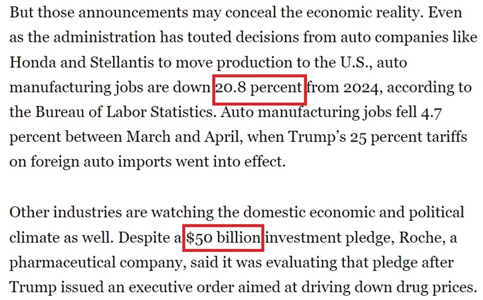《政治報》的報道提到,在關(guān)稅政策深陷爭議的情況下,美國政府當前非常渴望對外展示“美國經(jīng)濟增長”的跡象,以至于一些公司只要口頭表示“考慮增加在美國的產(chǎn)能”就能得到白宮的贊賞。但現(xiàn)實卻是,許多白宮吹噓的企業(yè)投資計劃要么已經(jīng)籌備多年,要么被人為夸大,不少還可能在未來生變。