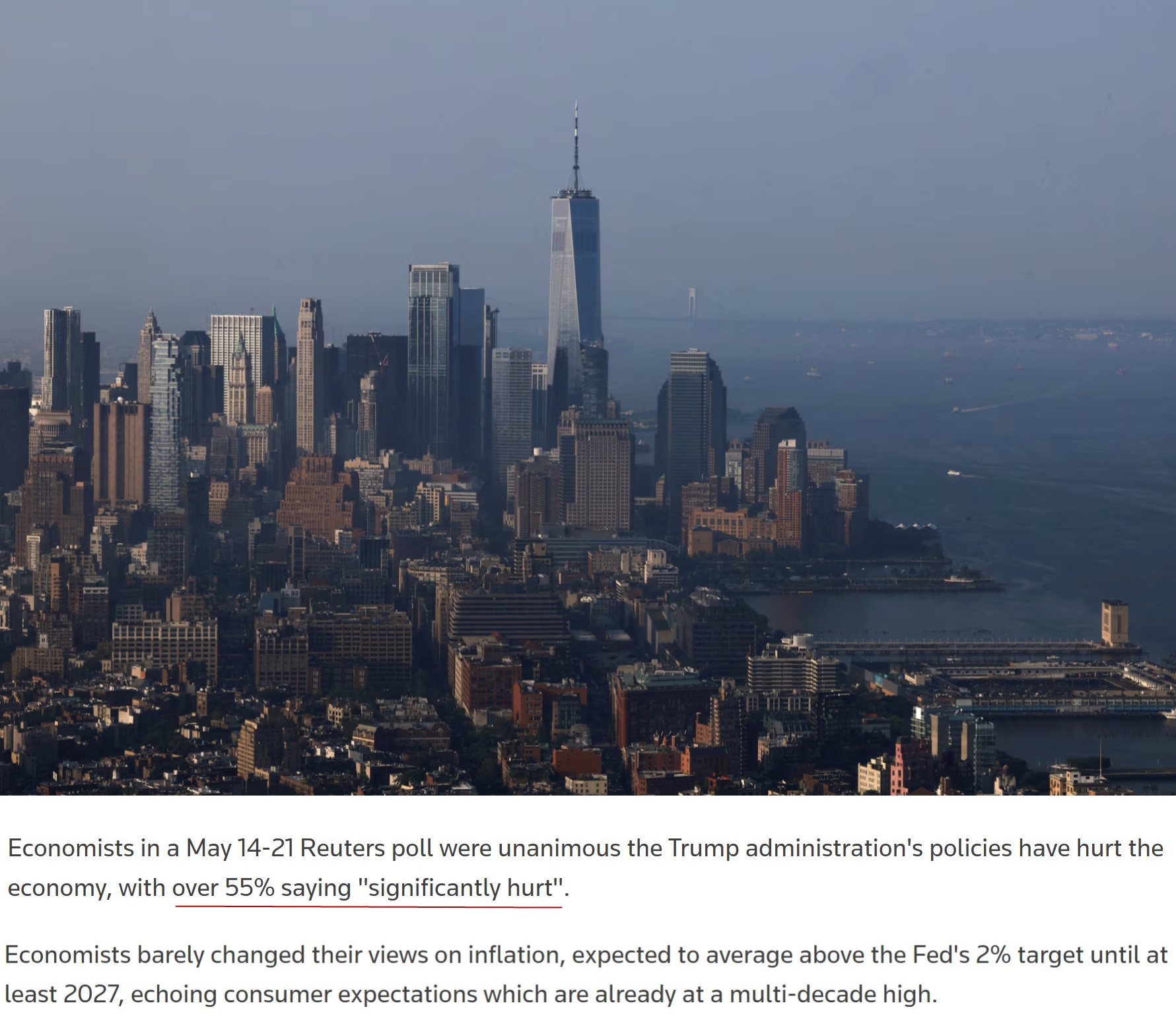 美國政府4月10日宣布暫緩對部分貿(mào)易伙伴征收“對等關(guān)稅”90天的期限即將過半,路透社近日公布的面向經(jīng)濟(jì)學(xué)家的最新民調(diào)顯示,受訪經(jīng)濟(jì)學(xué)家一致認(rèn)為,白宮的相關(guān)政策對美國經(jīng)濟(jì)造成了負(fù)面影響,其中超過55%認(rèn)為“造成了重大傷害”。
