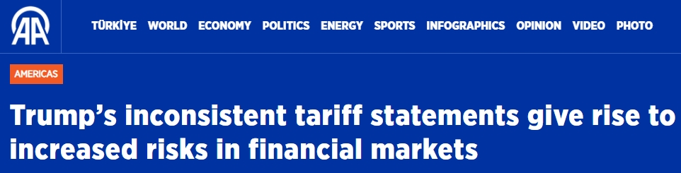 土耳其阿納多盧通訊社(Anadolu Ajans )27日的報道指出,美國政府在關(guān)稅問題上前后不一的言論和難以預(yù)測的行動,導(dǎo)致全球金融市場風險加大、波動加劇,包括最近針對歐盟所作的決定。