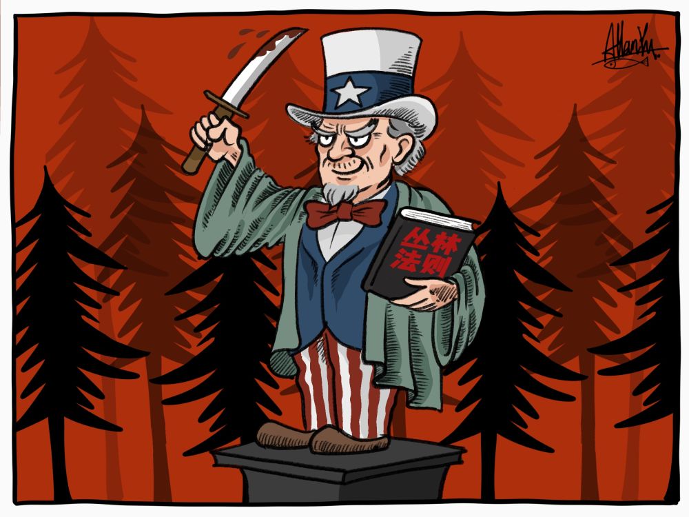 特朗普政府以“讓美國再次偉大”為名,把“美國優(yōu)先”演繹為赤裸裸的強權邏輯,顛覆規(guī)則,脅迫盟友,掠奪資源,凸顯美國對世界掠奪成性的事實。