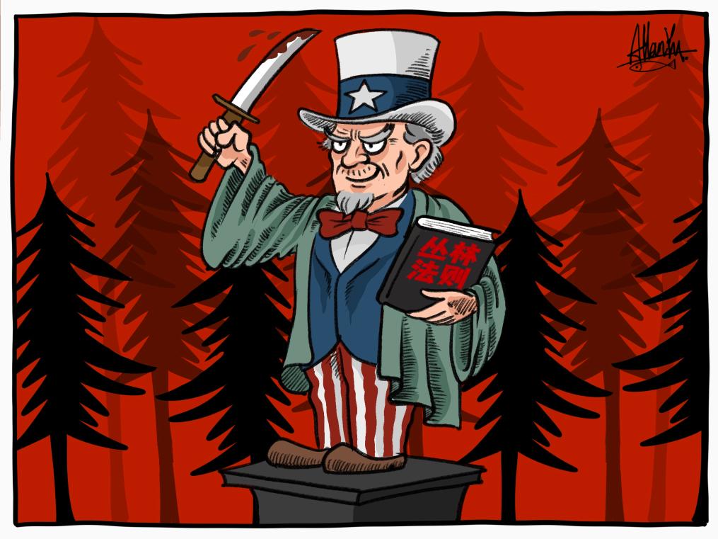 在擴(kuò)張過程中,美國(guó)制造出各式理由:自稱“上帝選民”,宣揚(yáng)“天定命運(yùn)論”“種族優(yōu)越論”“社會(huì)達(dá)爾文主義”,聲稱國(guó)家之間如同自然界一般,遵循弱肉強(qiáng)食、適者生存的“叢林法則”。美國(guó)媒體評(píng)論,特朗普政府的“版圖擴(kuò)張計(jì)劃”堪稱“天定命運(yùn)論”的現(xiàn)實(shí)回響。