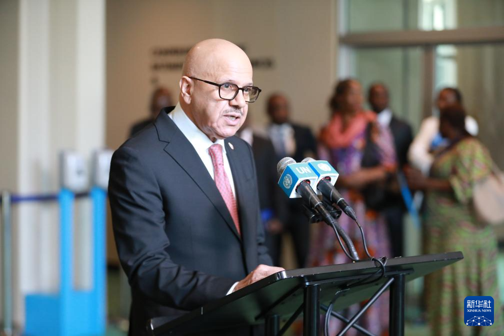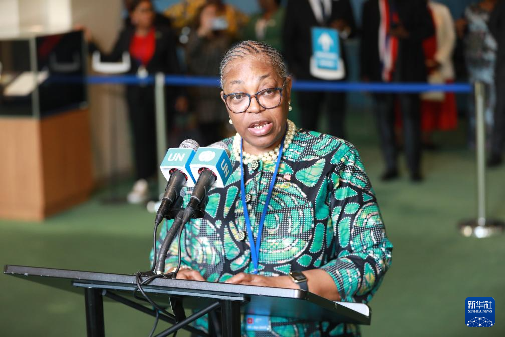 6月3日,在位于紐約的聯(lián)合國(guó)總部,利比里亞副外長(zhǎng)格雷在利比里亞當(dāng)選聯(lián)合國(guó)安理會(huì)非常任理事國(guó)后講話。新華社記者 謝鍔 攝
