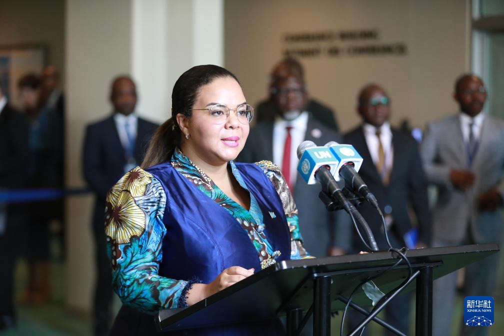 6月3日,在位于紐約的聯(lián)合國(guó)總部,剛果(金)外長(zhǎng)泰蕾茲·卡伊寬巴·瓦格納在剛果(金)當(dāng)選聯(lián)合國(guó)安理會(huì)非常任理事國(guó)后講話。新華社記者 謝鍔 攝
