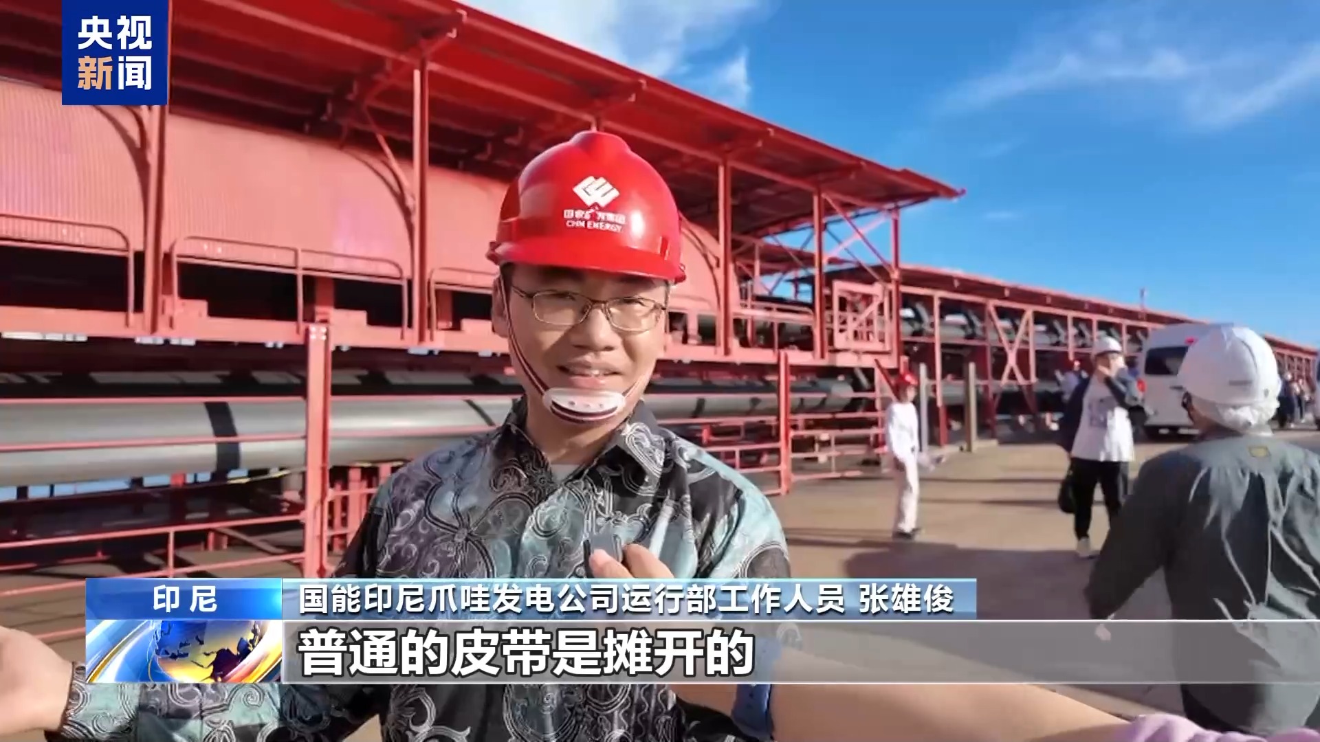 國(guó)能印尼爪哇發(fā)電公司運(yùn)行部工作人員 張雄?。?/strong>普通的皮帶是攤開(kāi)的,但你看,我們這有3.6公里長(zhǎng)的(管狀)皮帶,我們是管帶機(jī),那就是為了環(huán)保。