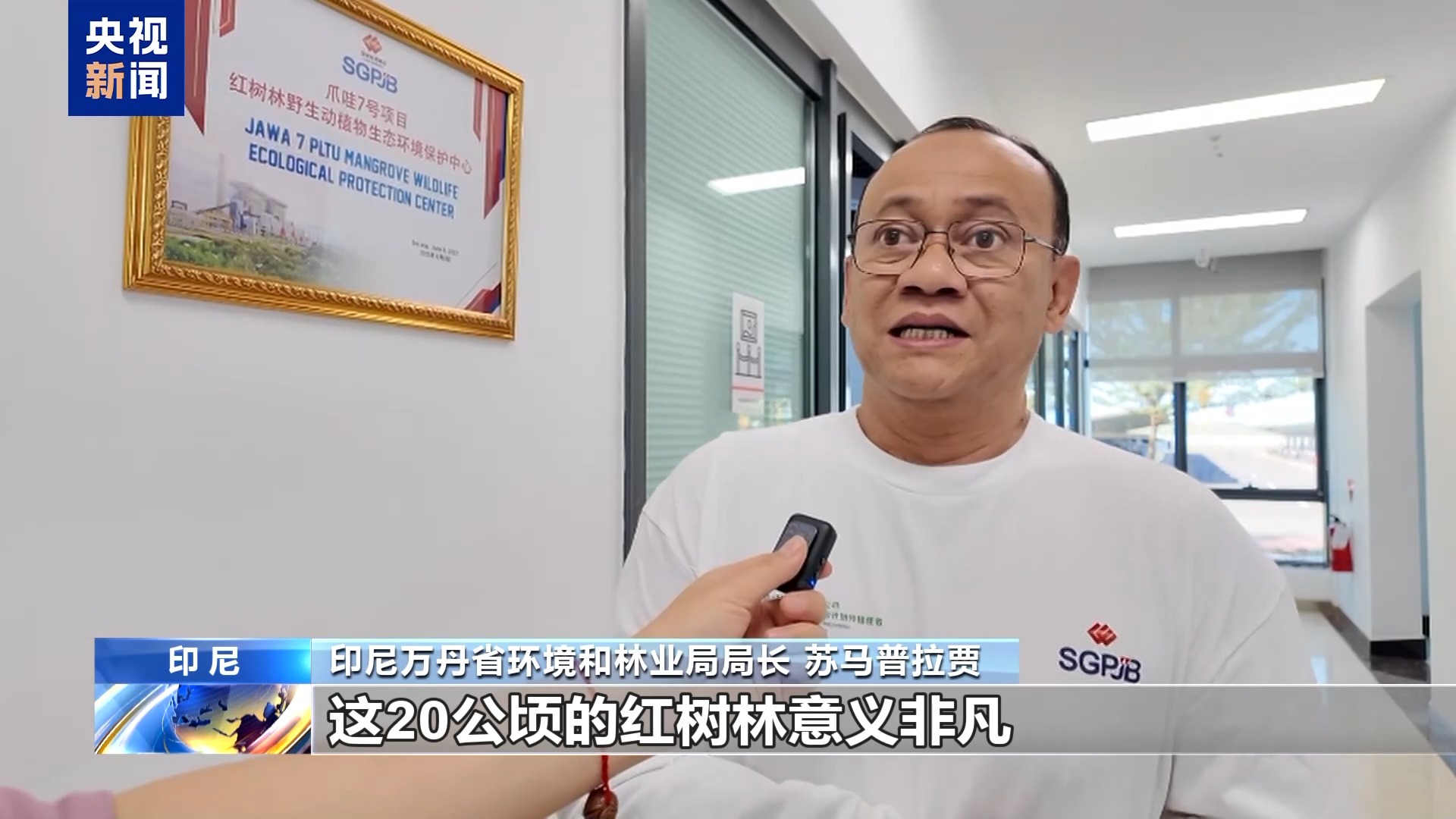 總臺(tái)記者 李琳:我現(xiàn)在所在的位置是印尼(單機(jī)容量)最大的火力發(fā)電廠。我現(xiàn)在所在的這個(gè)平臺(tái)有80米高。從我身后大家可以看到一大片紅樹(shù)林和電廠是和諧共生。那么在最開(kāi)始,這片紅樹(shù)林只有5公頃的面積,而隨著企業(yè)不斷地種植,現(xiàn)在已經(jīng)達(dá)到了20公頃。
