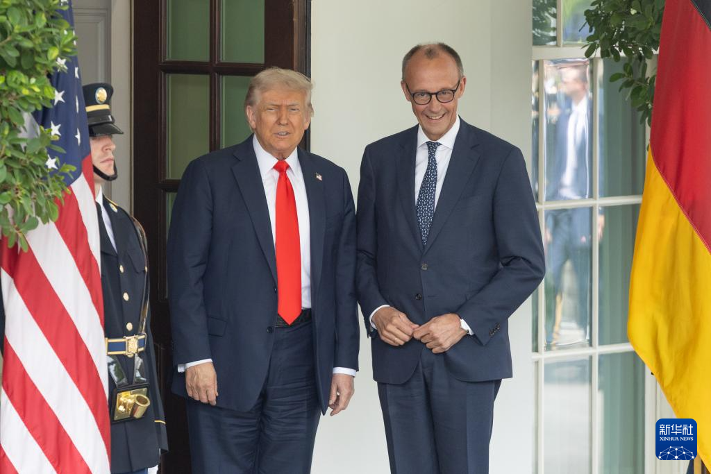 6月5日,美國(guó)總統(tǒng)特朗普在華盛頓白宮迎接到訪的德國(guó)總理默茨。新華社記者 胡友松 攝