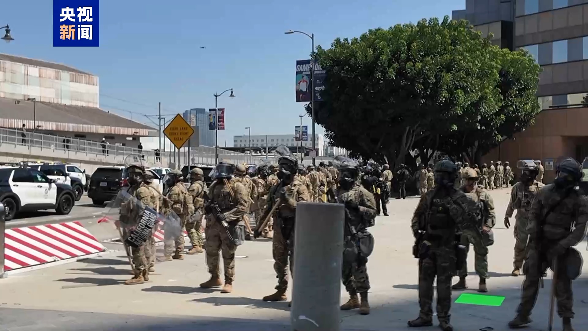央視記者 劉驍騫:同時,美國國民警衛(wèi)隊已部署在現(xiàn)場。這些荷槍實彈穿著迷彩服的士兵就是特朗普政府部署的國民警衛(wèi)隊隊員,他們在幾個小時前,也就是當?shù)貢r間8日上午入駐到這里。根據(jù)官方消息,目前已經(jīng)有至少300名國民警衛(wèi)隊隊員抵達洛杉磯。