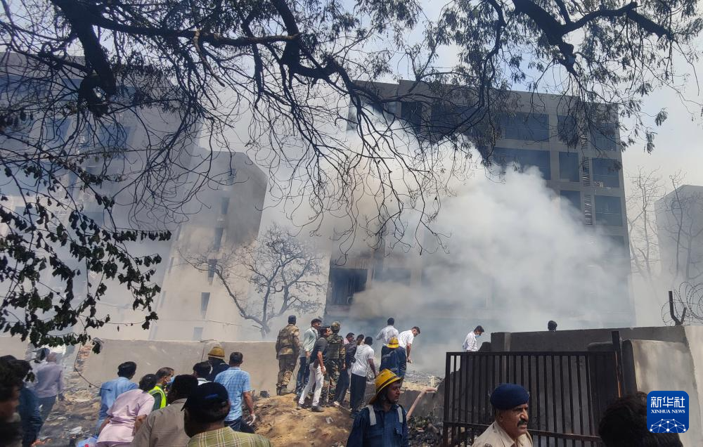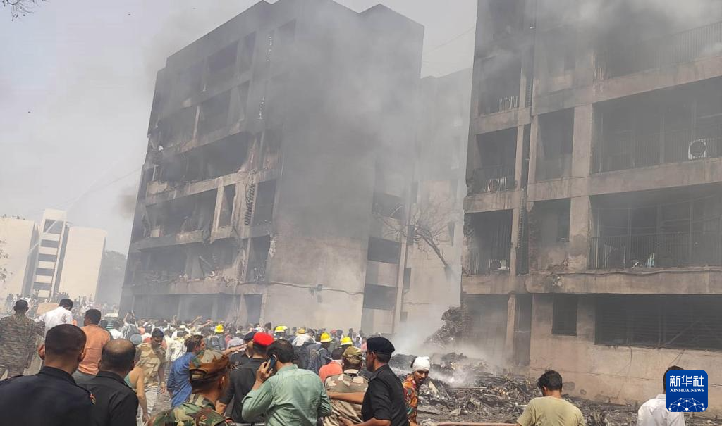 6月12日,在印度古吉拉特邦艾哈邁達(dá)巴德,人們在客機(jī)失事現(xiàn)場進(jìn)行救援。新華社/印度聯(lián)合新聞社