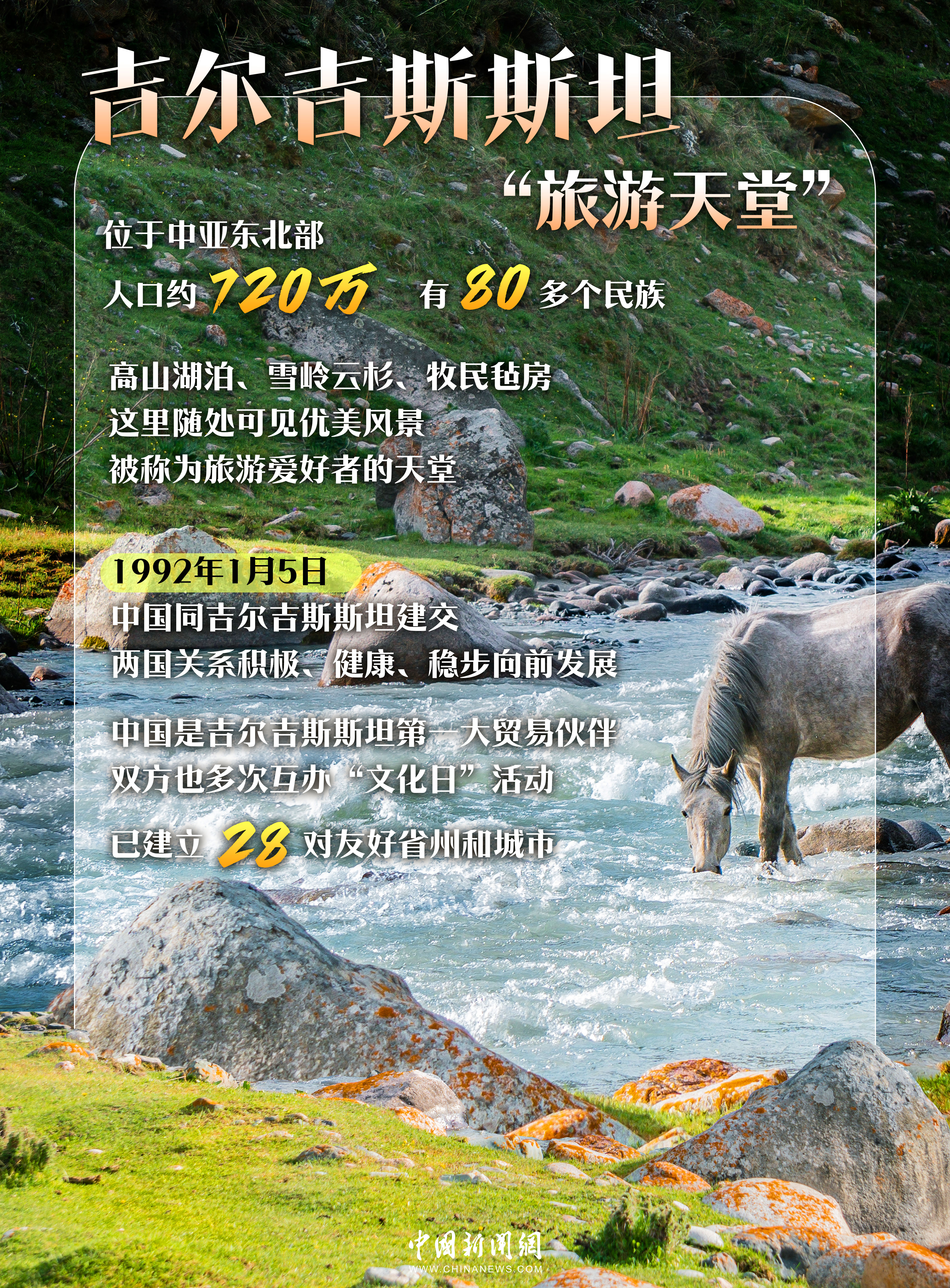 吉爾吉斯斯坦同樣自然環(huán)境優(yōu)美,被譽為“中亞小瑞士”,每年吸引著全球上百萬游客。