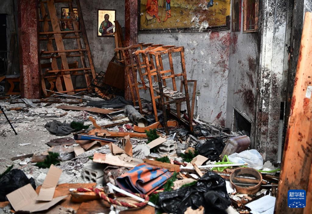 這是6月22日拍攝的敘利亞首都大馬士革東部發(fā)生爆炸的教堂內(nèi)景。新華社發(fā)(阿馬爾·薩法爾賈拉尼攝)