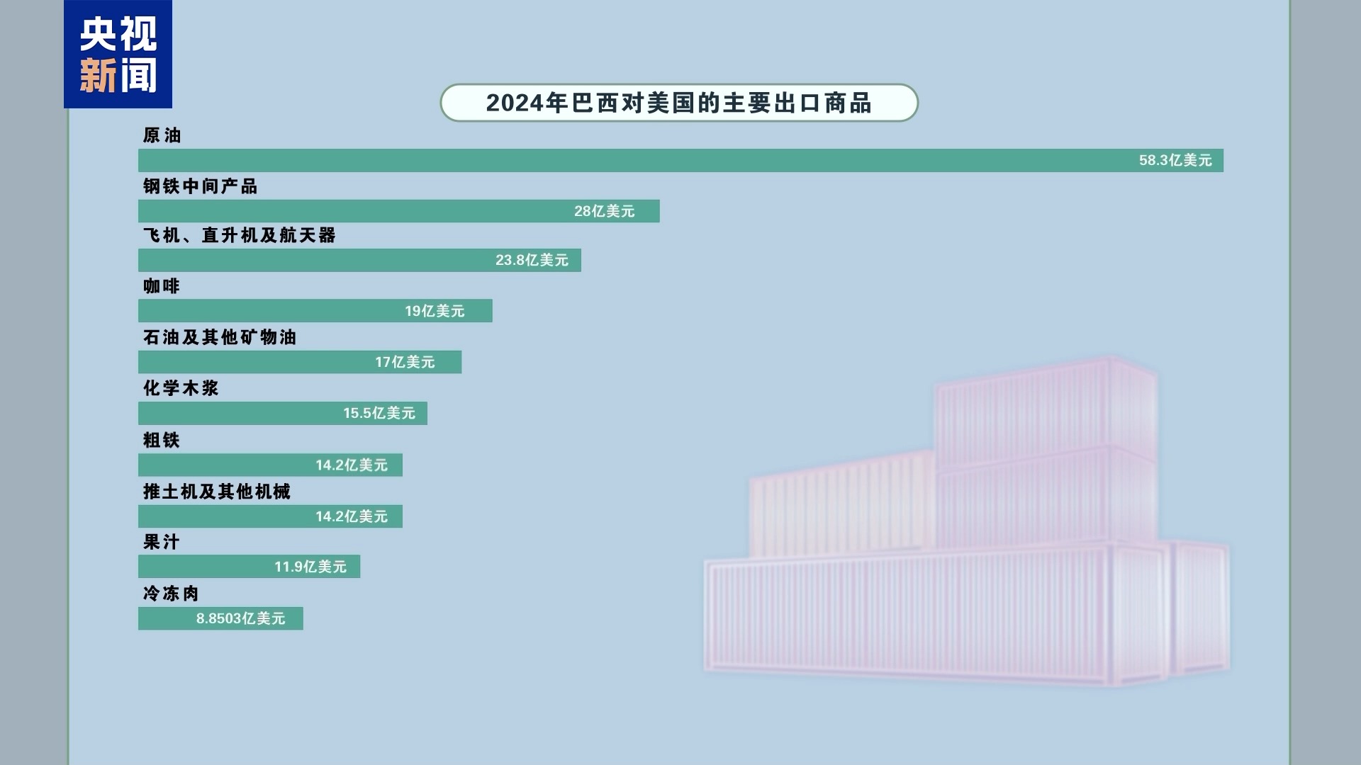 美國有線電視新聞網(wǎng)報道稱,2024年,巴西向美國出口了總額高達(dá)404億美元的商品。咖啡、果汁、冷凍肉等美國民眾日常食物以及原油、粗鐵等基礎(chǔ)化工及能源商品都在排名前十內(nèi)。