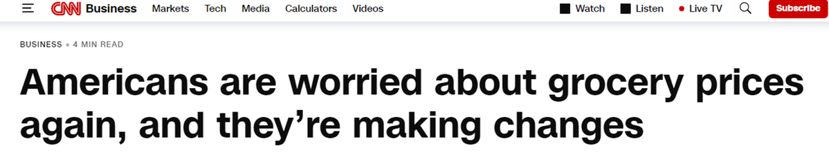 報道還指出,民調(diào)清晰地表明美國人對高昂的食品成本和經(jīng)濟狀況倍感焦慮,他們的購物方式也因此出現(xiàn)巨大改變。這與眾多企業(yè)提到的情況一致,他們表示消費者正在調(diào)整購物模式,比如從購買大包裝改成買小包裝,只買生活必需品,更多地在家吃飯。
