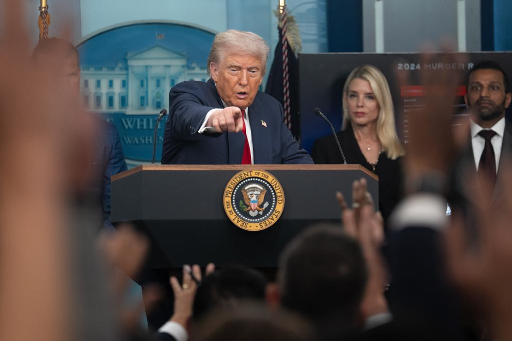 8月11日,美國(guó)總統(tǒng)特朗普在華盛頓白宮出席新聞發(fā)布會(huì)。新華社記者胡友松攝