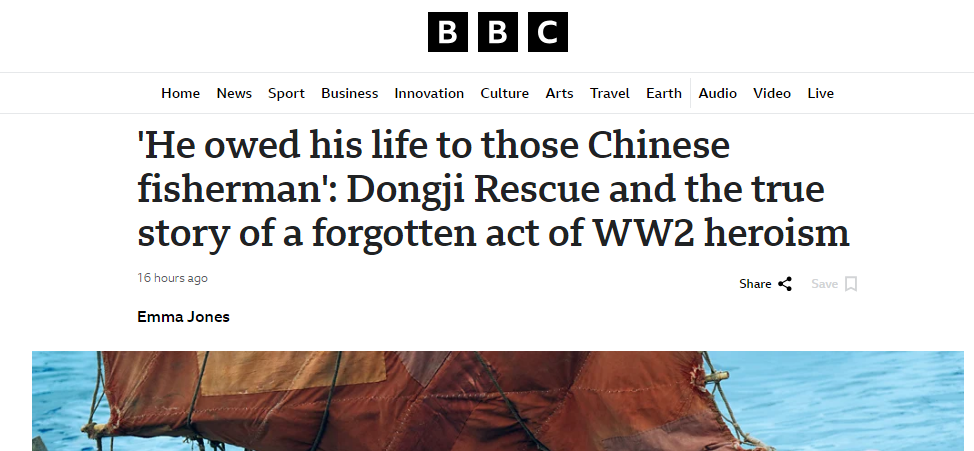 暑期檔電影《東極島》正在熱映,影片講述了1942年,一艘搭載英軍戰(zhàn)俘的船只在舟山群島附近被潛艇擊沉,上千名戰(zhàn)俘被封鎖在船艙內(nèi),命懸一線。危難之際,東極島上的漁民,不顧風高浪急與生命危險,毅然駛向深海救人的故事。近日,英國廣播公司網(wǎng)站發(fā)表一篇文章回顧了相關歷史事件,標題是《“他的生命歸功于中國漁民”:東極島救援與二戰(zhàn)中一段被塵封的英雄事跡》。