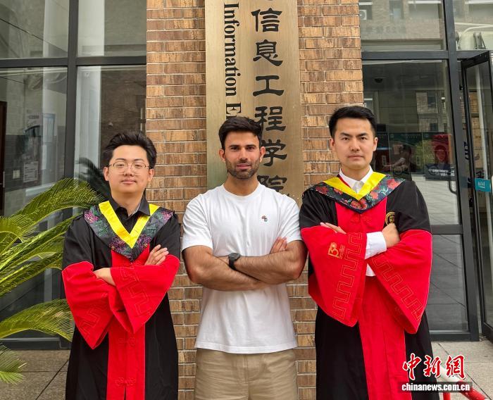 2024年6月,世界智能產(chǎn)業(yè)博覽會期間,穆罕默德·沙拉爾與導師和實驗室同學一起參與相關科研成果展陳工作。(天津大學 供圖)