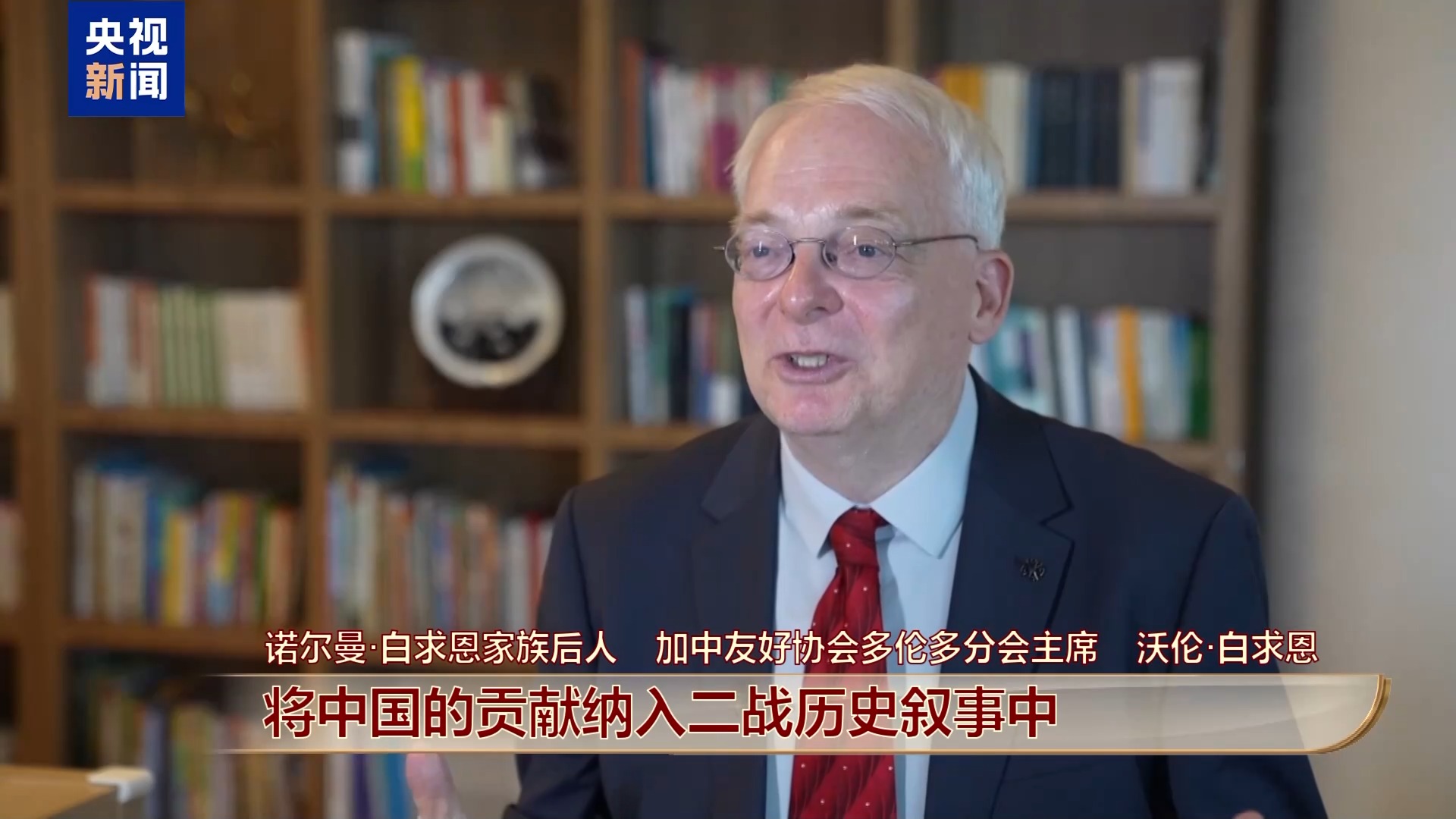 諾爾曼·白求恩家族后人 加中友好協(xié)會多倫多分會主席 沃倫·白求恩:我們要更有全球化視角或者說國際主義精神。我認(rèn)為我們應(yīng)該重點關(guān)注年輕人,將中國的貢獻(xiàn)納入二戰(zhàn)歷史敘事中,因為80年后的今天,真正經(jīng)歷過二戰(zhàn)且依然健在的人已經(jīng)很少了。我們必須分享研究成果,并向公眾傳播這些歷史。