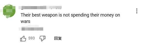 有美國網(wǎng)友表示,中國最好的“武器”,是不把錢花在發(fā)動(dòng)戰(zhàn)爭(zhēng)上。