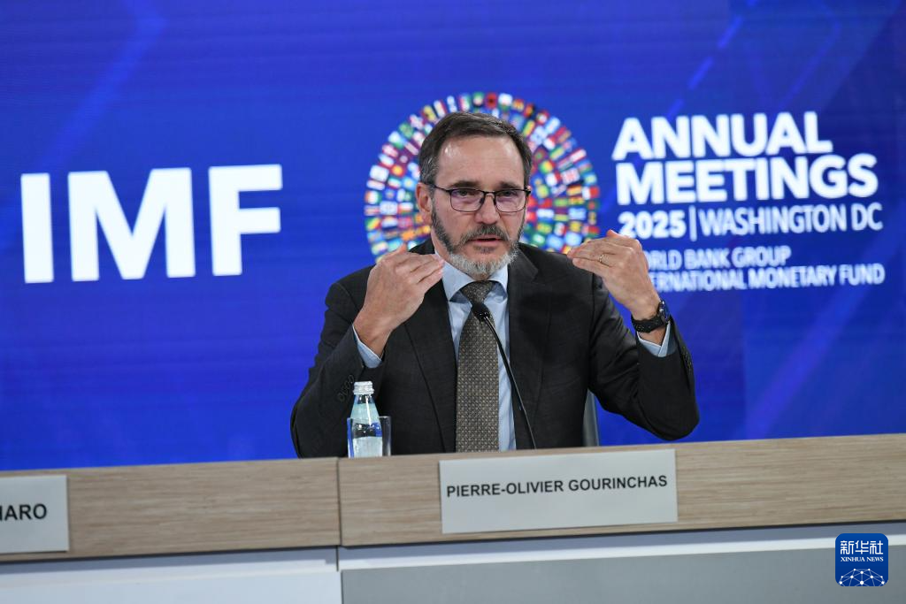 10月14日,在美國華盛頓,國際貨幣基金組織首席經(jīng)濟學家皮埃爾-奧利維耶·古蘭沙在《世界經(jīng)濟展望報告》新聞發(fā)布會上講話。新華社記者 李睿 攝