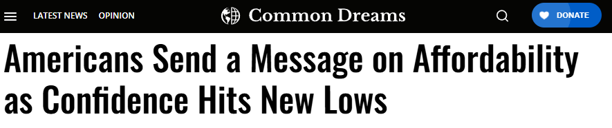 “基層合作組織”(Groundwork Collaborative)政策與倡導(dǎo)部門主管亞歷克斯·雅克茲指出,美民眾對經(jīng)濟的信心下滑源于實際生活壓力的加重。他認(rèn)為,當(dāng)前政府在經(jīng)濟管理上未能有效改善民生,反而導(dǎo)致家庭債務(wù)創(chuàng)下新高,物價不斷上漲,信心指數(shù)自然跌至低谷。