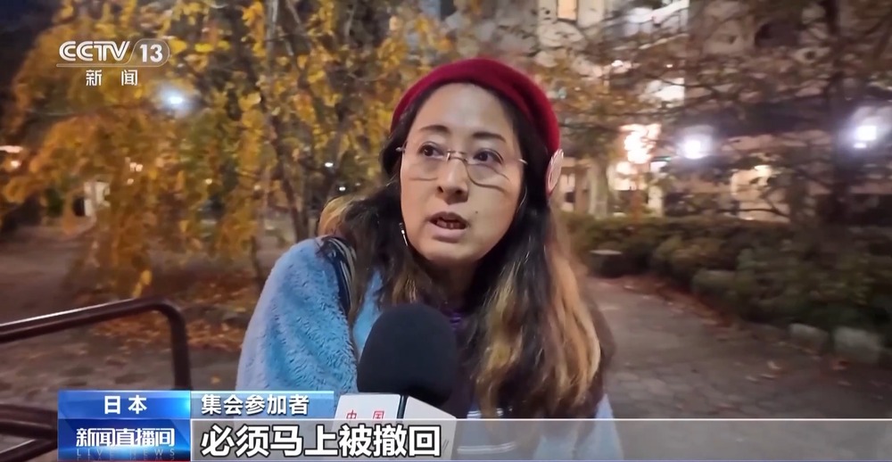 集會(huì)參加者:我當(dāng)然認(rèn)為高市應(yīng)該撤回錯(cuò)誤言論,對(duì)于國民來說,這絕對(duì)是不應(yīng)該出現(xiàn)的首相發(fā)言,我認(rèn)為這是違反憲法的。