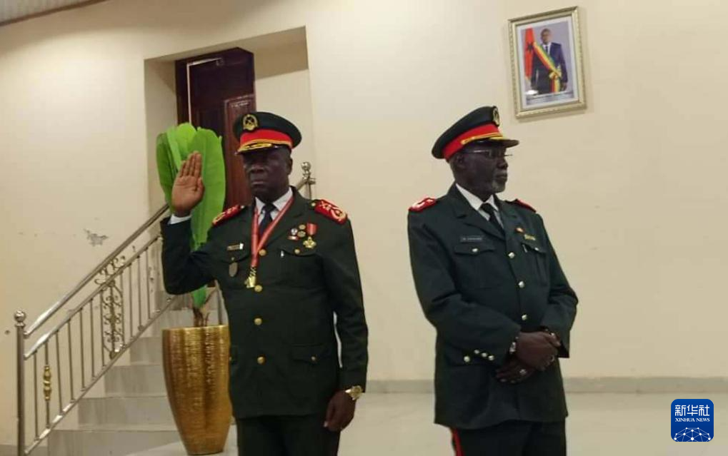11月27日,幾內(nèi)亞比紹高級(jí)軍官奧爾塔·因塔阿(左)在首都比紹出席就職儀式(手機(jī)照片)。新華社發(fā)