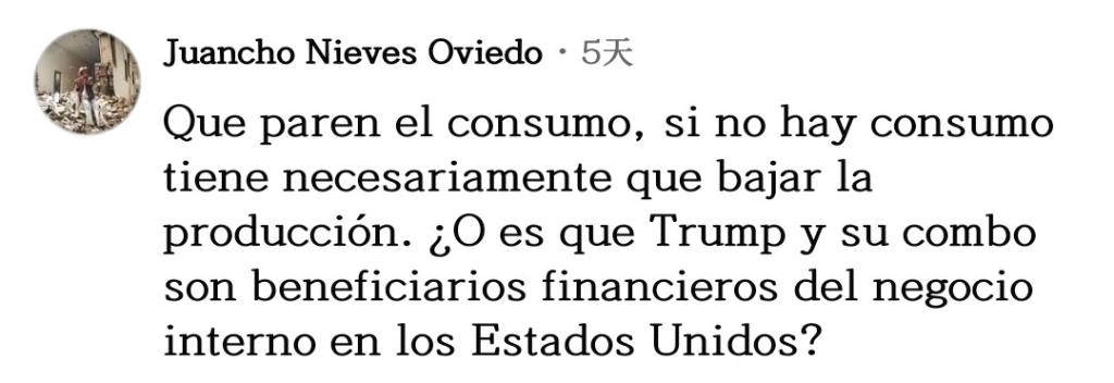 網(wǎng)友胡安喬·奧維多一針見血:“停止(毒品)消費(fèi)吧,如果沒(méi)人消費(fèi),生產(chǎn)必然下降。莫非特朗普和他的團(tuán)隊(duì)是美國(guó)國(guó)內(nèi)毒品生意的受益者?”
