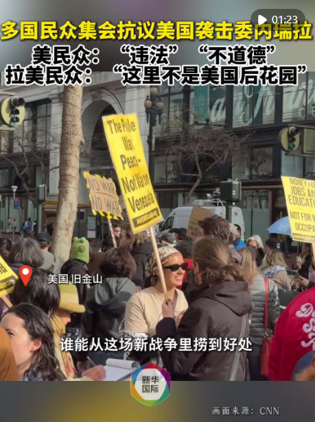 1月3日,美國多地及英國、巴西、古巴等多國爆發(fā)抗議集會,譴責美軍3日凌晨突襲委內瑞拉并抓走委總統(tǒng)及其夫人。美國民眾譴責美國行為“非法”“不道德”。