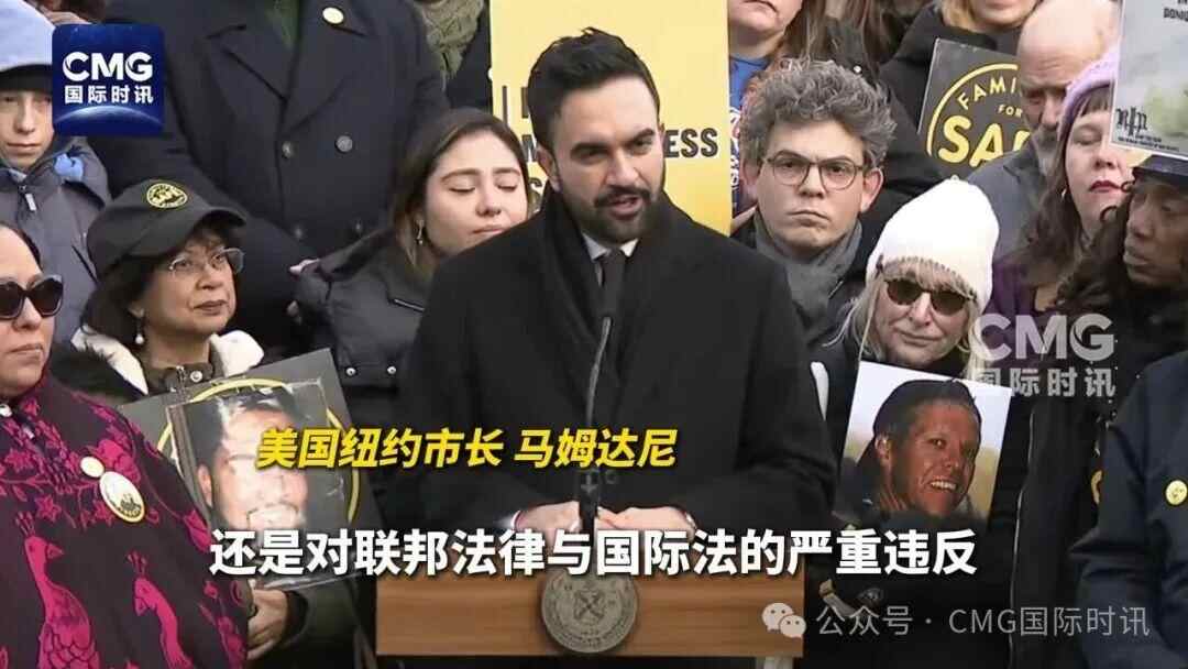 紐約市長(zhǎng)馬姆達(dá)尼同日發(fā)表講話,強(qiáng)調(diào)自己對(duì)于此次軍事行動(dòng)的反對(duì),表示美國(guó)此舉不單是圖謀顛覆他國(guó)政權(quán),同時(shí)也是對(duì)美國(guó)聯(lián)邦法律與國(guó)際法的嚴(yán)重違反。