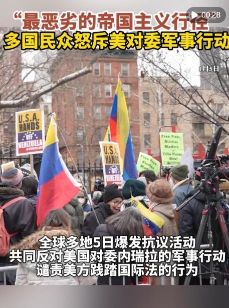 當(dāng)?shù)貢r間5日中午,遭美國強(qiáng)行控制的委內(nèi)瑞拉總統(tǒng)馬杜羅夫婦在美國紐約南區(qū)聯(lián)邦地區(qū)法院首次出庭,拒絕美方一切所謂指控。當(dāng)天,全球多地爆發(fā)抗議活動,反對美國對委內(nèi)瑞拉的軍事行動,譴責(zé)美方踐踏國際法的行為。