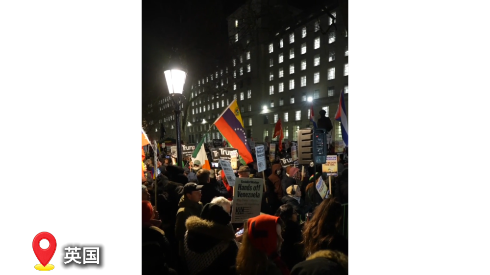 當?shù)貢r間5日晚,大量民眾聚集在英國首相官邸唐寧街10號,抗議美國對委內(nèi)瑞拉的軍事打擊,要求英國首相斯塔默譴責美方行動。