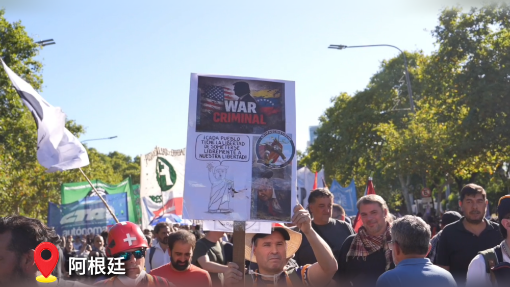 示威者高呼“立即釋放馬杜羅”和“人民不會屈服”等口號,要求立即釋放委內(nèi)瑞拉總統(tǒng)并譴責美國對委內(nèi)瑞拉的軍事打擊,稱“美國無視國際秩序,對整個世界構成嚴重威脅”。