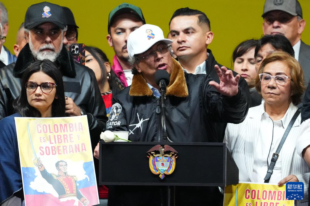 1月7日,在哥倫比亞首都波哥大,哥倫比亞總統(tǒng)佩特羅在玻利瓦爾廣場(chǎng)舉行的示威游行活動(dòng)中發(fā)表講話。新華社發(fā)(安德烈斯·莫雷諾攝)