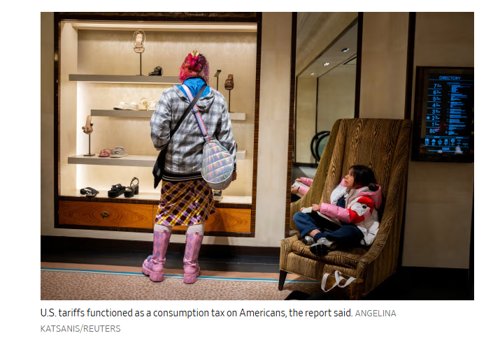 報(bào)告稱,美國(guó)關(guān)稅實(shí)際上相當(dāng)于對(duì)美國(guó)民眾征收消費(fèi)稅。路透社報(bào)道截圖