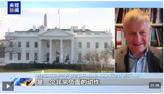 聯(lián)合國(guó)前副秘書長(zhǎng) 聯(lián)合國(guó)環(huán)境規(guī)劃署前執(zhí)行主任 索爾海姆:美國(guó)退出《巴黎協(xié)定》,是一個(gè)非常負(fù)面的動(dòng)作。我們需要更多,而不是更少的多邊合作。但歸根結(jié)底,這主要傷害的是美國(guó)人民,而不是世界其他國(guó)家。