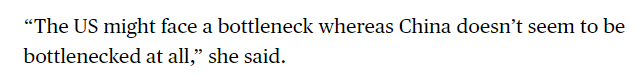 文章同時提到,相比之下,美國在幾十年前電力需求似乎趨于平穩(wěn)后,新增裝機(jī)速度一直較慢。如今,隨著人工智能的迅猛發(fā)展,美國正艱難應(yīng)對數(shù)據(jù)中心等高耗能行業(yè)的電力需求,導(dǎo)致電力市場極為緊張。文章援引業(yè)內(nèi)人士的話說:“美國可能會面臨瓶頸,而中國似乎完全沒有瓶頸?!?/p>