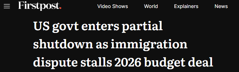這是自去年11月12日結束的美國歷史上最長聯(lián)邦政府“停擺”(持續(xù)43天)以來,政府再度陷入部分“停擺”。雖然預計此次“停擺”時間將大幅縮短,但若無法迅速解決,部分聯(lián)邦雇員或將無薪工作,其余人員則可能被迫無薪休假。福克斯新聞首席國會記者查德·珀格拉姆表示:“此次‘停擺’預計至少將延長至近90小時——前提是眾議院能在2月2日與參議院達成一致?!?/p>