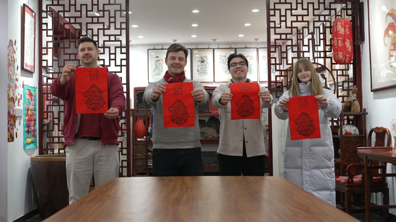 帝漢尼:我?guī)麄兏惺苤袊鴤鹘y(tǒng)文化,有剪紙,我們一起剪了一個“春”字。我還帶他們?nèi)ネ啬戤?,先刷上墨,再把紙放上面,用木板刷刷刷,他們覺得很有意思。我們印了一個馬。我們還一起包餃子,我像個老師一樣教他們包餃子。其實(shí)我包得不好看,他們包得也不好看,主要是我們包餃子這個過程特別開心。