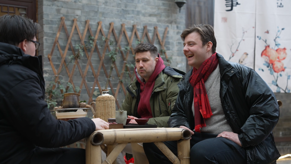 帝漢尼(右一)帶著匈牙利老鄉(xiāng)們體驗(yàn)中國時下最流行的“圍爐煮茶”