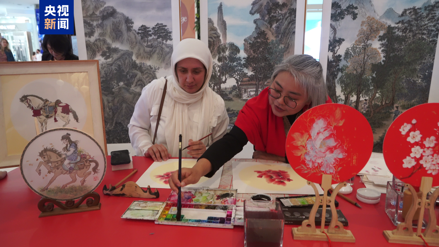 除了大屏幕同步直播除夕夜的總臺春晚外,舞臺前還設(shè)有多個傳統(tǒng)民俗文化體驗(yàn)展臺。觀眾既可以在這里親自動手,制作一把非遺折扇,也可以近距離賞玩總臺春晚周邊文創(chuàng)產(chǎn)品,有的觀眾還收到了“騏驥馳騁”馬年限量玩偶。為預(yù)熱春晚直播,獨(dú)具特色的太極與川劇變臉表演先后登場,令觀眾連連喝彩。