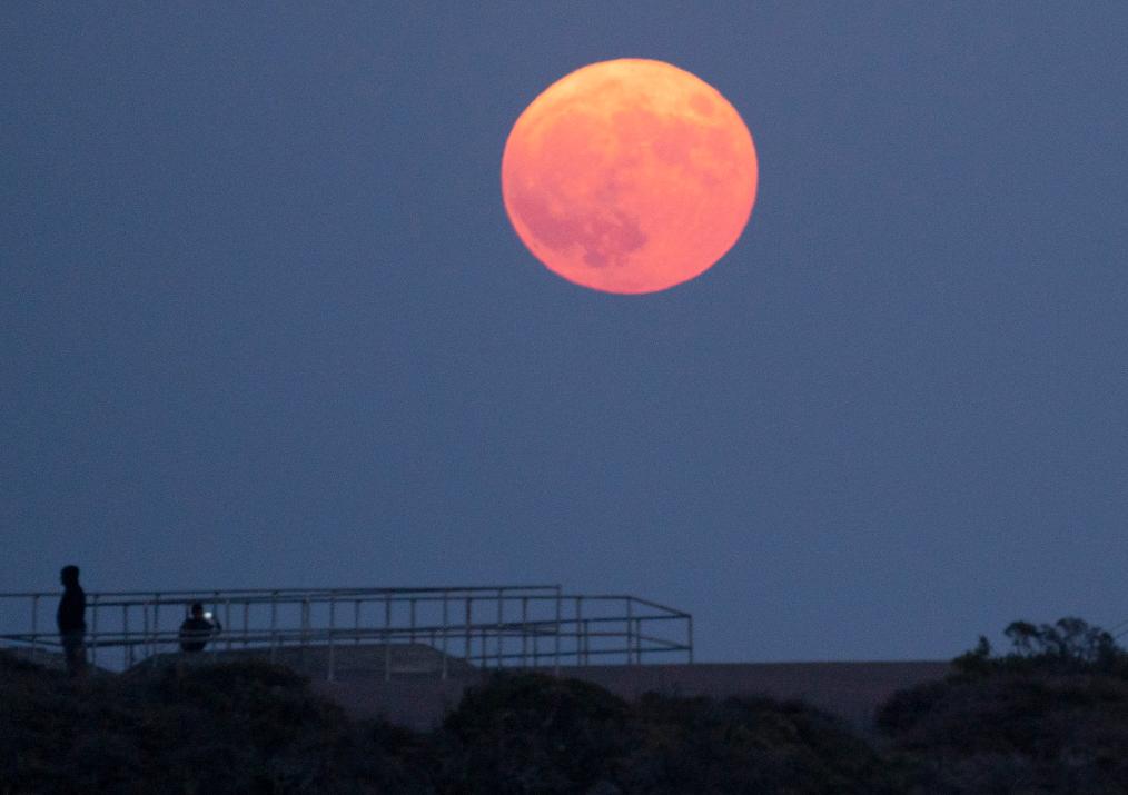 這是2023年8月30日在美國(guó)舊金山金門大橋附近拍攝的“超級(jí)月亮”。新華社發(fā)(李建國(guó)攝)