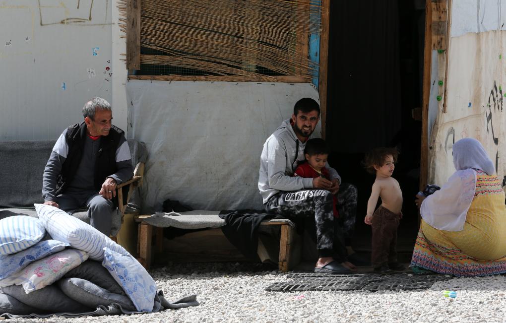 2018年4月12日,在希臘雅典以北約86公里處的里措納難民營(yíng),一對(duì)夫婦照顧孩子。新華社發(fā)(馬里奧斯·羅洛斯攝)