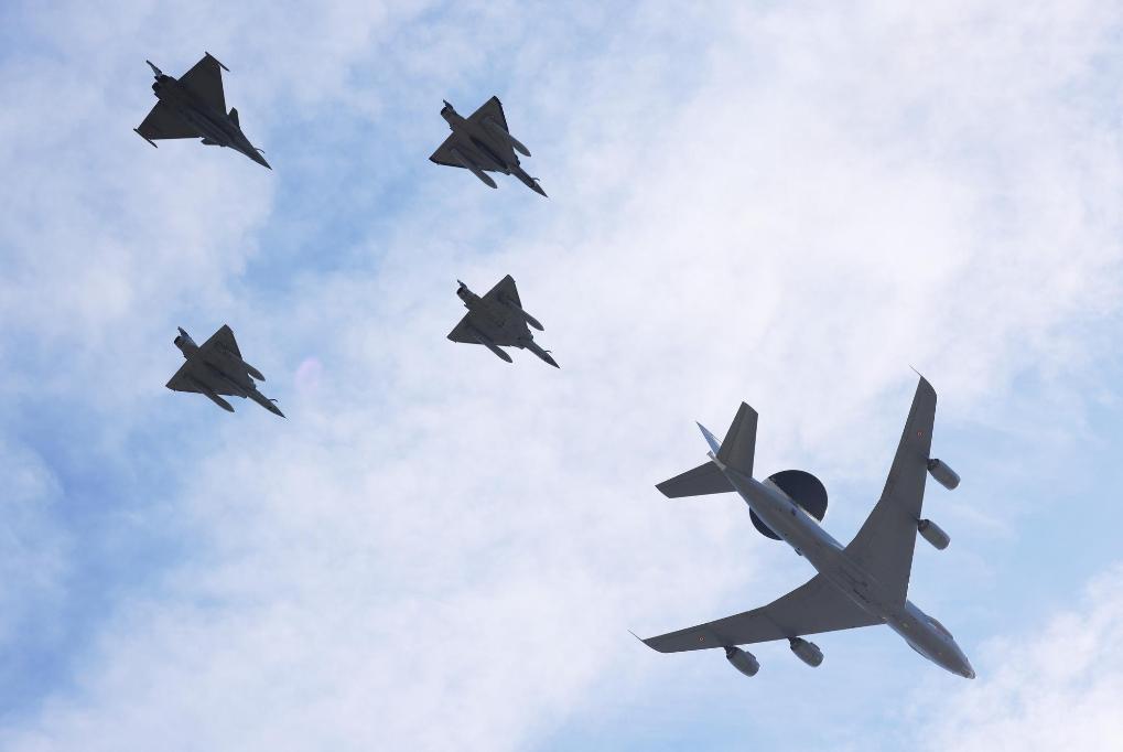 2022年7月14日,法國空軍飛機參加在法國巴黎舉行的國慶閱兵式。新華社記者高靜攝
