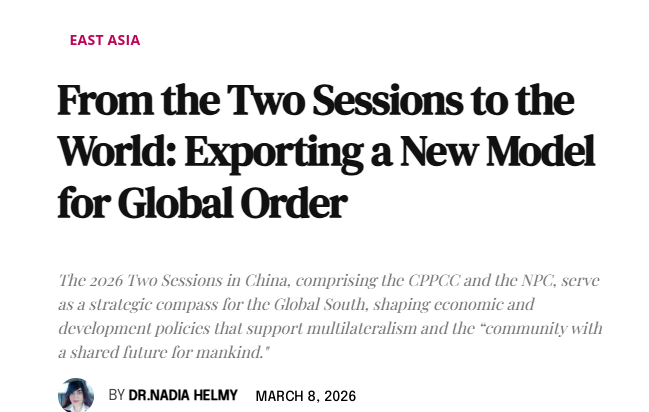 歐洲《現(xiàn)代外交》網(wǎng)站3月8日刊載埃及本尼蘇伊夫大學(xué)副教授納迪亞·赫爾米博士的評(píng)論文章稱,2026年中國(guó)兩會(huì)為全球南方國(guó)家提供了戰(zhàn)略指南,會(huì)議制定了支持多邊主義和推動(dòng)構(gòu)建人類命運(yùn)共同體的經(jīng)濟(jì)發(fā)展政策。會(huì)議推動(dòng)南南合作,促進(jìn)可持續(xù)發(fā)展,并提供了基于伙伴關(guān)系和互利共贏的全球治理新模式。